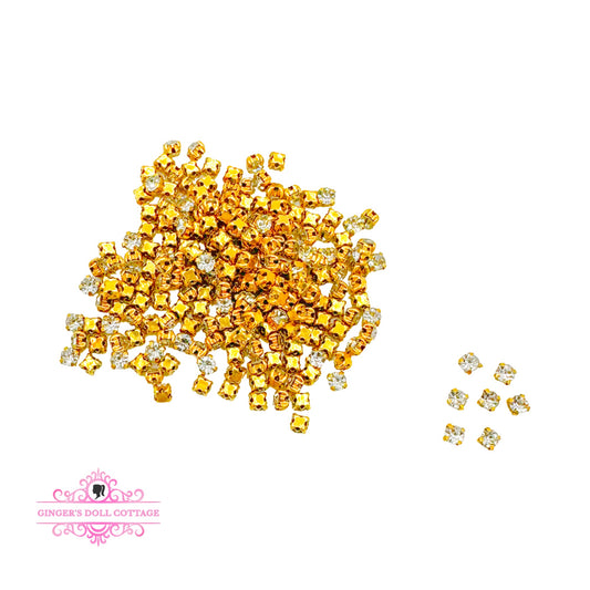 4mm Mini Clear Sew On Gold Crystal Rhinestones Doll Clothes Sewing Repair 200